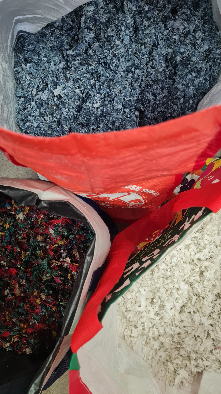 jeans papir, narejen izključno iz lokalno zbranih tekstilnih odpadkov.